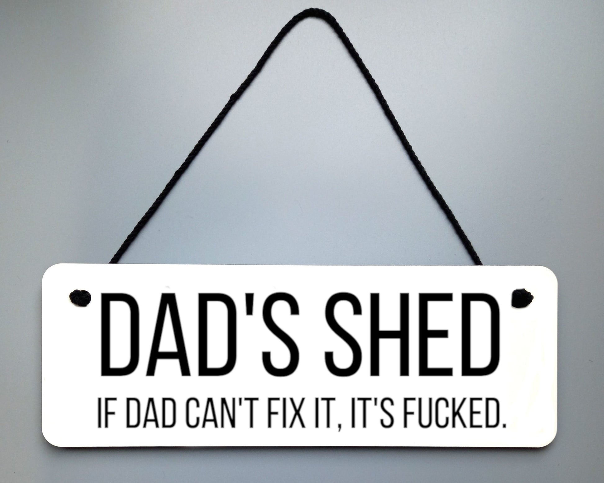 Transform your dad's shed or man cave with this straight to the point novelty hanging wall sign. With the witty phrase "If Dad can't fix it, it's fucked", this sign makes for a perfect Father's Day gift. Fun and playful, just like Dad!