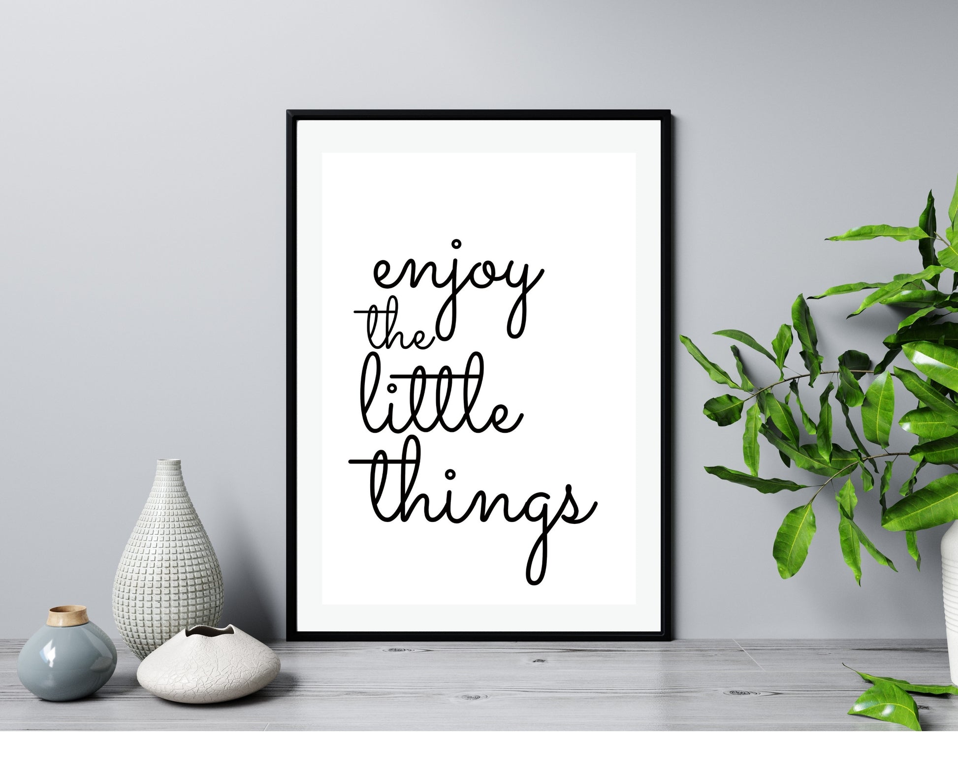 Stay inspired with our 'Enjoy The Little Things' black and white art print. This print serves as a daily reminder to enjoy the moment and not sweat the small stuff. With a motivational message to live life to the fullest, let this wall art bring positivity to your space.