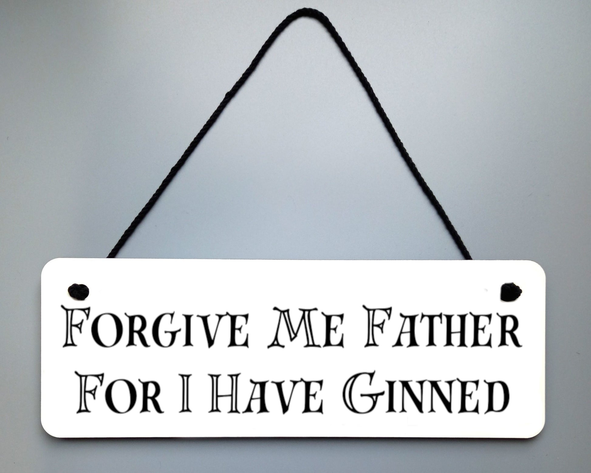 Forgive me father for I have ginned! This novelty hanging wall sign is perfect for any house party, adding a touch of humour to the festivities. Don't worry, no sinning necessary!!