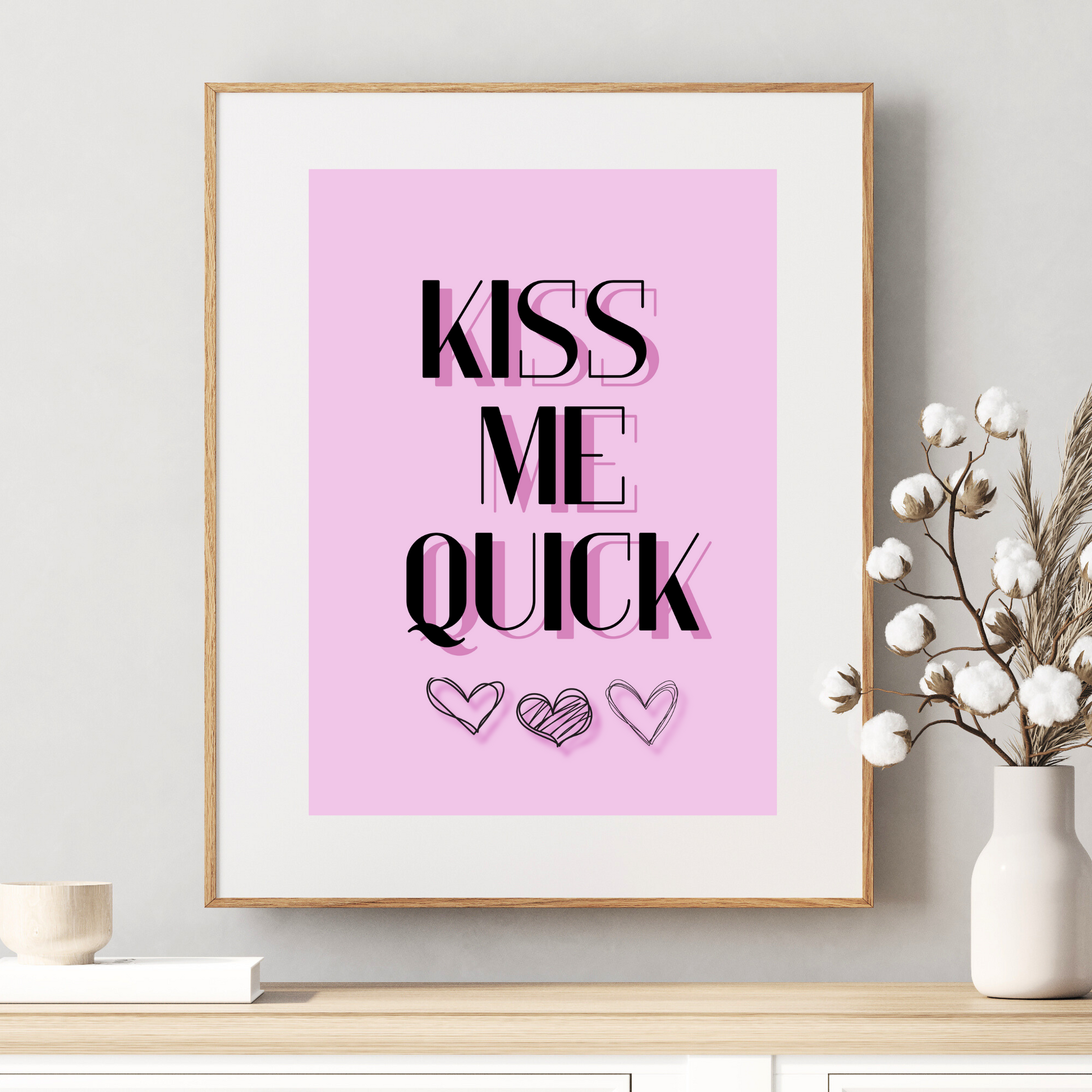This unframed 'Kiss Me Quick' art print channels the playful spirit of retro seaside postcards, evoking saucy fun and bold nostalgia from a bygone era.