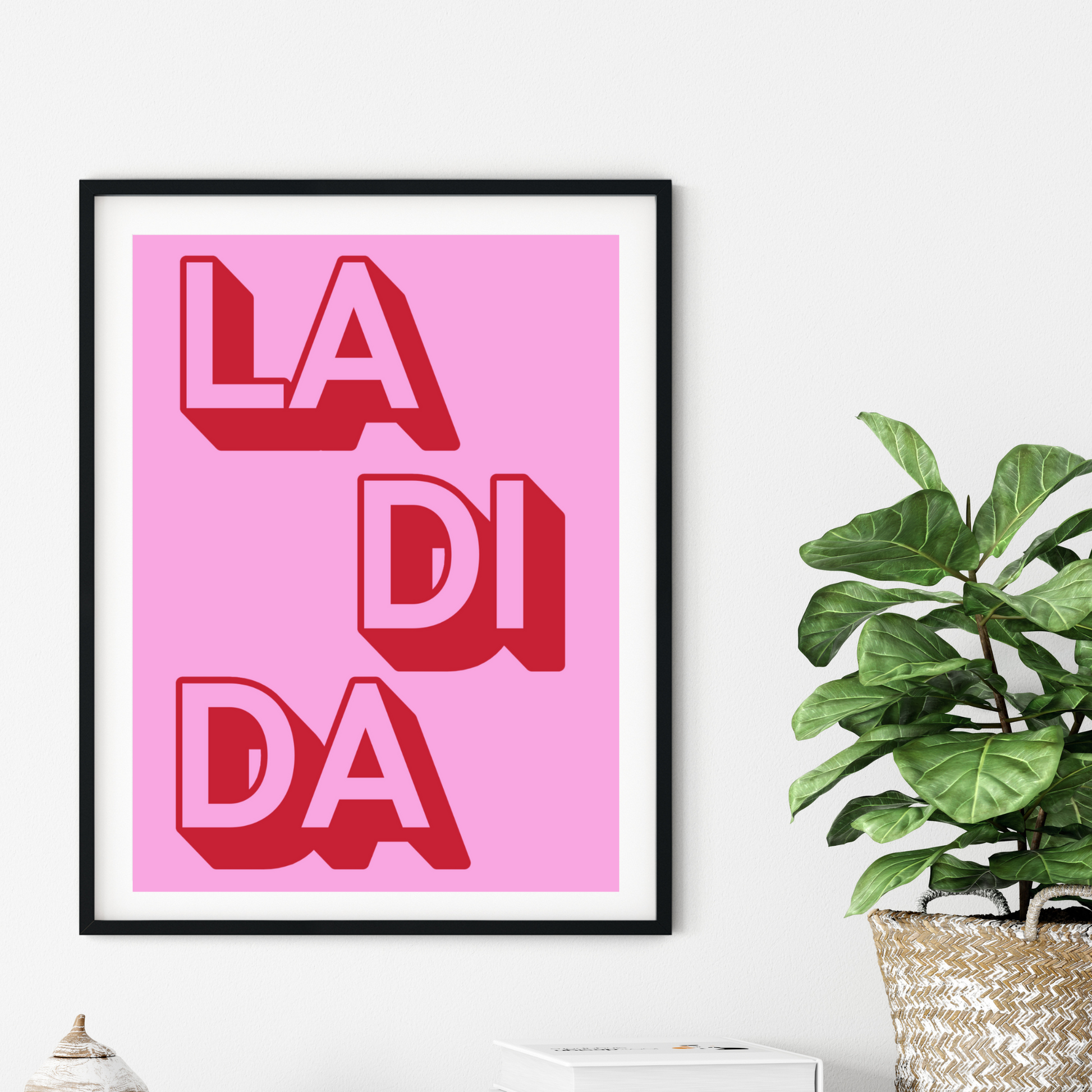 Make a bold statement with the 'LA DI DA' art print, a daring blend of disco bar vibes and retro kitsch.