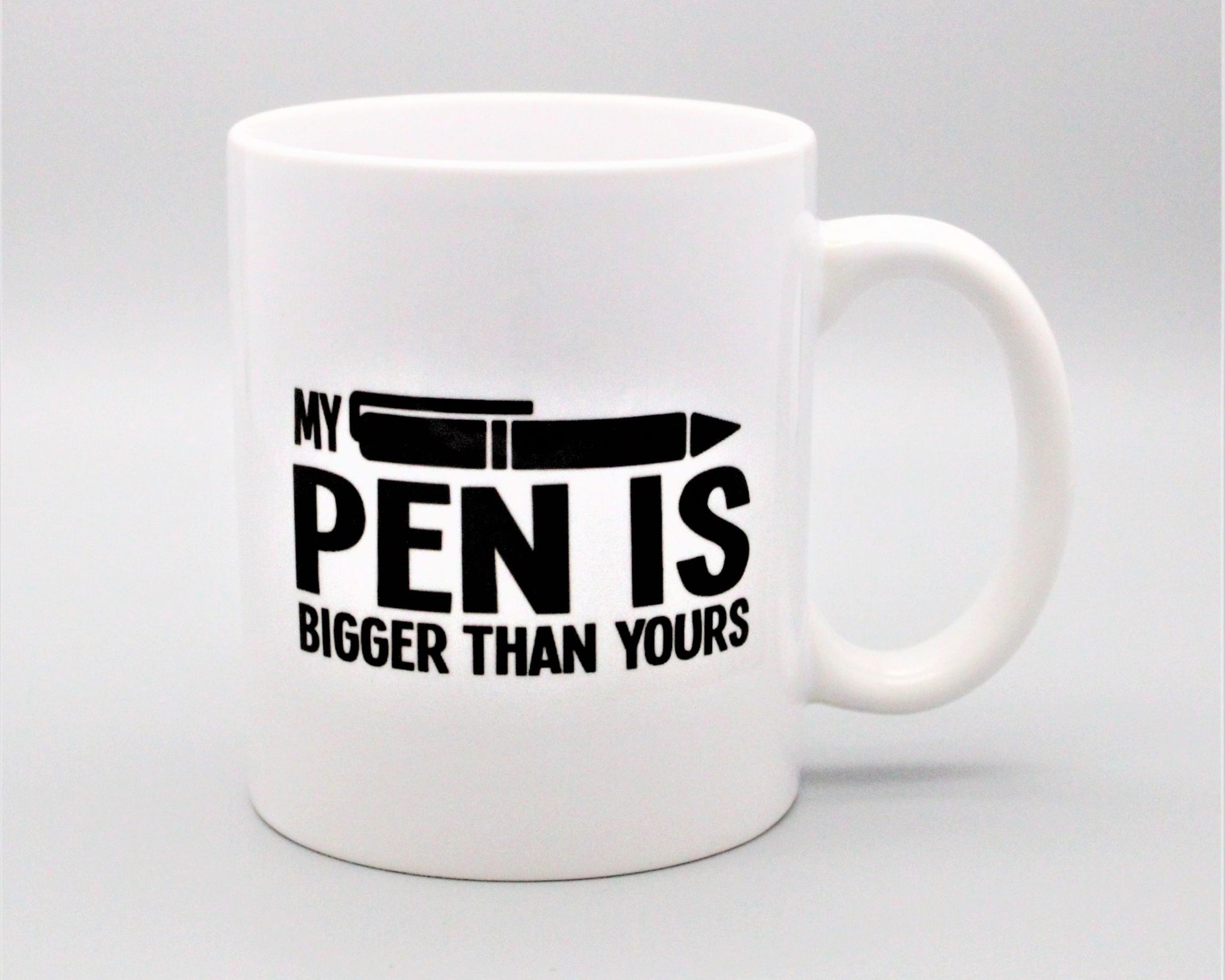 Embrace your inner child with the 'My Pen is Bigger Than Yours' Mug. This mug is cheeky and playful, with willy-sized proportions. Don't miss out on the wordplay and big boy fun this mug has to offer. Get ready to giggle and judge with the PENis Mug. Size Matters!!