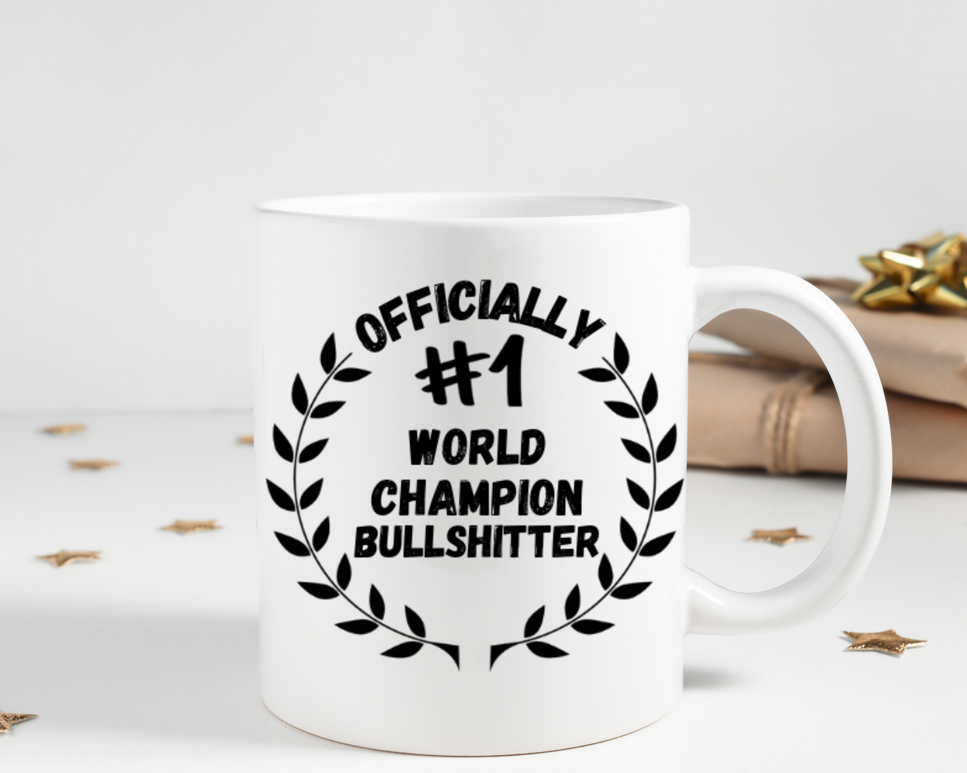 Bring some cheeky fun to your coffee breaks with the World Champion Bullshitter Mug.
